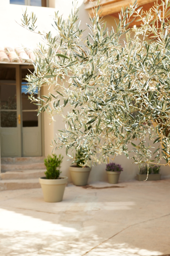 Parte del encanto de la casa lo da el espacio exterior: una gran zona al aire libre envuelta de árboles frutales, olivos, nogales, palmeras y pinos, ideales para refugiarse y disfrutar del encanto de la naturaleza, con un buen desayuno, tomar un aperitivo, hacer barbacoas y refrescarte en la alberca con familiares o amigos.